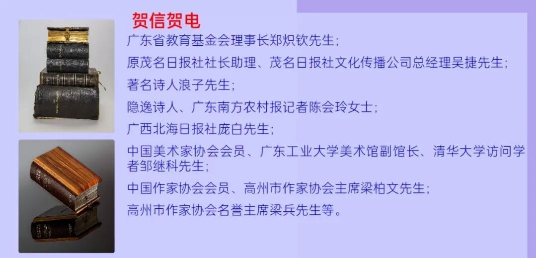 据了解,《我的田野之歌》诗集特邀全国著名名家、茂名市作协主席张慧谋,以及知名诗人浪子联袂作序。活动当天,全国各地众多文学艺术界知名人士纷纷发来贺电贺词,其中包括中国作家协会会员、高州市作协主席梁柏文,共同为本次新书首发送上祝福。