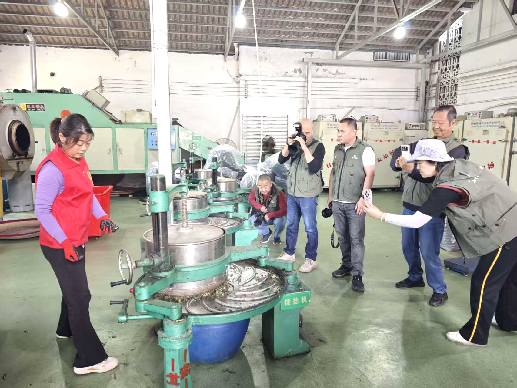 随后,嘉宾们前往兴宁单丛茶文化馆,系统了解兴宁茶产业的发展历程与文化传承。该文化馆是径南镇茶酒产业社区的核心节点,与茶集散中心、茶叶制作交流中心共同构成“种植—加工—文旅—销售”全产业链。与会人员或在单丛茶集散中心品鉴新茶,或走进元章茶厂近距离观摩传统制茶工艺。
