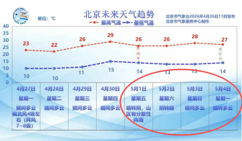今天迎来新的一周,预计周内仍多大风天气,特别是今天白天有4级左右北风,阵风7至8级,出行需做好防风措施。“五一”假期前四天天气预报出炉,预计以晴为主,最高温均突破25℃。详情>>